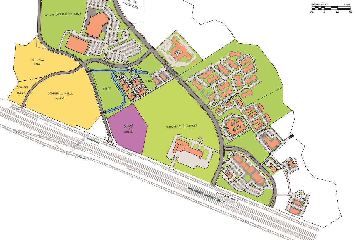 Hunt Properties, with a total portfolio value of $2.5B selected Barron-Stark Engineers, LP to masterplan and engineer the newest development west of Fort Worth in the Crown Valley development of Willow Park. This 50 acre project multi-use facility will add to their 9mm square feet of developed properties since 1975.